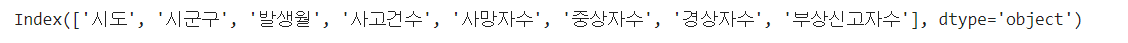 df = pd.read_csv('./data/도로교통공단_시군구별 월별 교통사고 통계_20211231.csv',encoding='cp949')